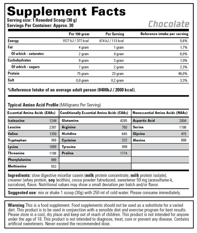 Ta 1 scoop (30 gram) og mix md 250-350 ml vann eller melk. Drikk 30 min før du legger deg om kvelden.